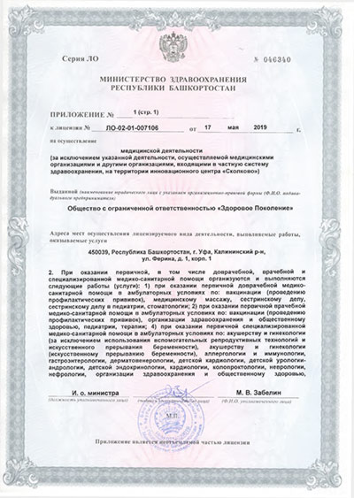 «Здоровое Поколение» на ул. Ферина г. Уфы - это современное многопрофильное амбулаторно-поликлиническое учреждение, оказывающее широкий спектр медицинских услуг детям и взрослым. Консультации и лечение проводят врачи высшей категории, доктора и кандидаты медицинских наук, специалисты различных направлений: лор, невролог, гастроэнтеролог, кардиолог, дерматолог-венеролог, эндокринолог, уролог-нефролог, логопед, терапевт, педиатр, травматолог, онколог, маммолог, аллерголог, психолог, иммунолог, офтальмолог, ортопед, гинеколог (детский/взрослый). Анализы, процедурный кабинет, медосмотры детские/взрослые, иглорефлексотерапевт, кабинет физиотерапевтического лечения, массаж, УЗИ, ЭКГ, НСГ, УЗДС, ЭхоКГ, ТКДС, ЭЭГ, РЭГ, Холтер-ЭКГ, ХЕЛИК-тест. Также Вы можете вызвать врача на дом. У нас можно пройти медкомиссию для устройства на работу, водительскую медкомиссию, на право ношения оружия, на санитарную книжку, а также медкомиссию для детей, поступающих в детский сад или школу. Центр оснащен самым современным высокоточным диагностическим оборудованием. У нас будущие мамы могут познакомиться с педиатром, обсудить волнующие ее вопросы еще до рождения ребенка и предупредить возможные осложнения раннего послеродового периода. Действуют программы медицинского наблюдения детей всех возрастов, включающие в себя все обязательные составляющие диспансерного наблюдения детей и учитывающие особенности каждого ребенка.